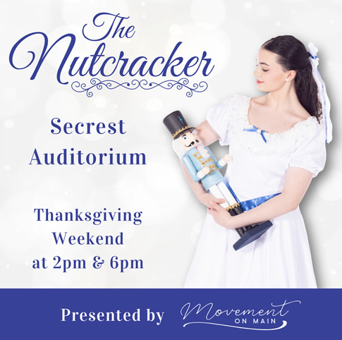 The Nutcracker, a delightful holiday classic, will light up the Secrest Auditorium stage on Saturday, November 290th at 2pm and 6 pm, and on Sunday, November 30th at 2 pm and 6pm. This stunning family-friendly production includes more than 200 local dancers, along with professional guest artists.